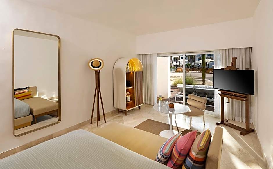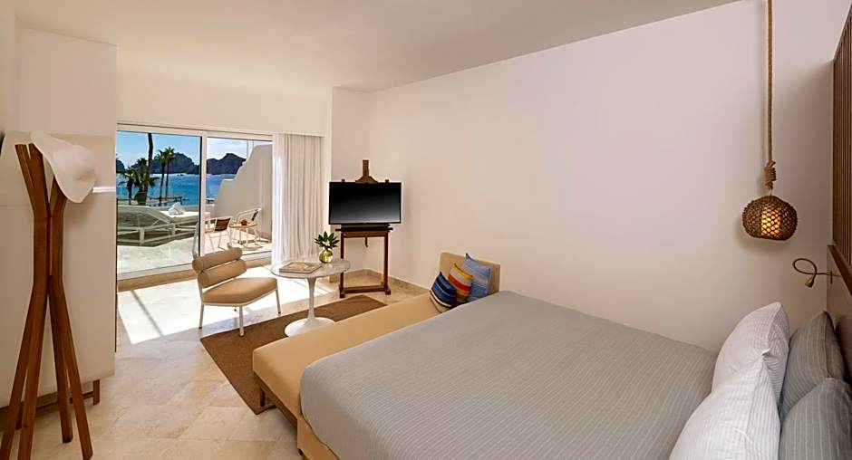Large, sliding-glass doors allow the Baja sun to flood the room with crisp, white light. Spacious guestrooms are part of ME+ and offer private, furnished terraces overlooking the Sea of Cortez. VIP amenities enhance your experience. All suites come with King sized beds & terrace and include the private sun deck overlooking The Beach Club and the Sea of Cortez.