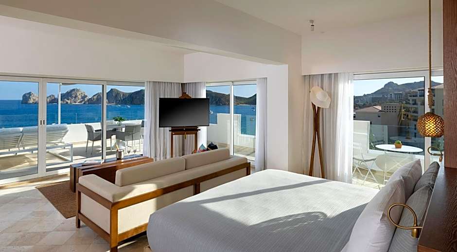 This room category is for adults only Imagine your own private sun deck overlooking the iconic Arc, the sparkling Sea of Cortez, and popular Lovers Beach. With views of the ocean, lounge beds, a private whirlpool tub and an outdoor rain shower, the Loft Suites offer a luxurious home away from home. A separate dining area and sitting area provide ideal spots to gather with friends and enjoy breathtaking views of Cabo. The Loft Suite features all the VIP amenities that define ME+.